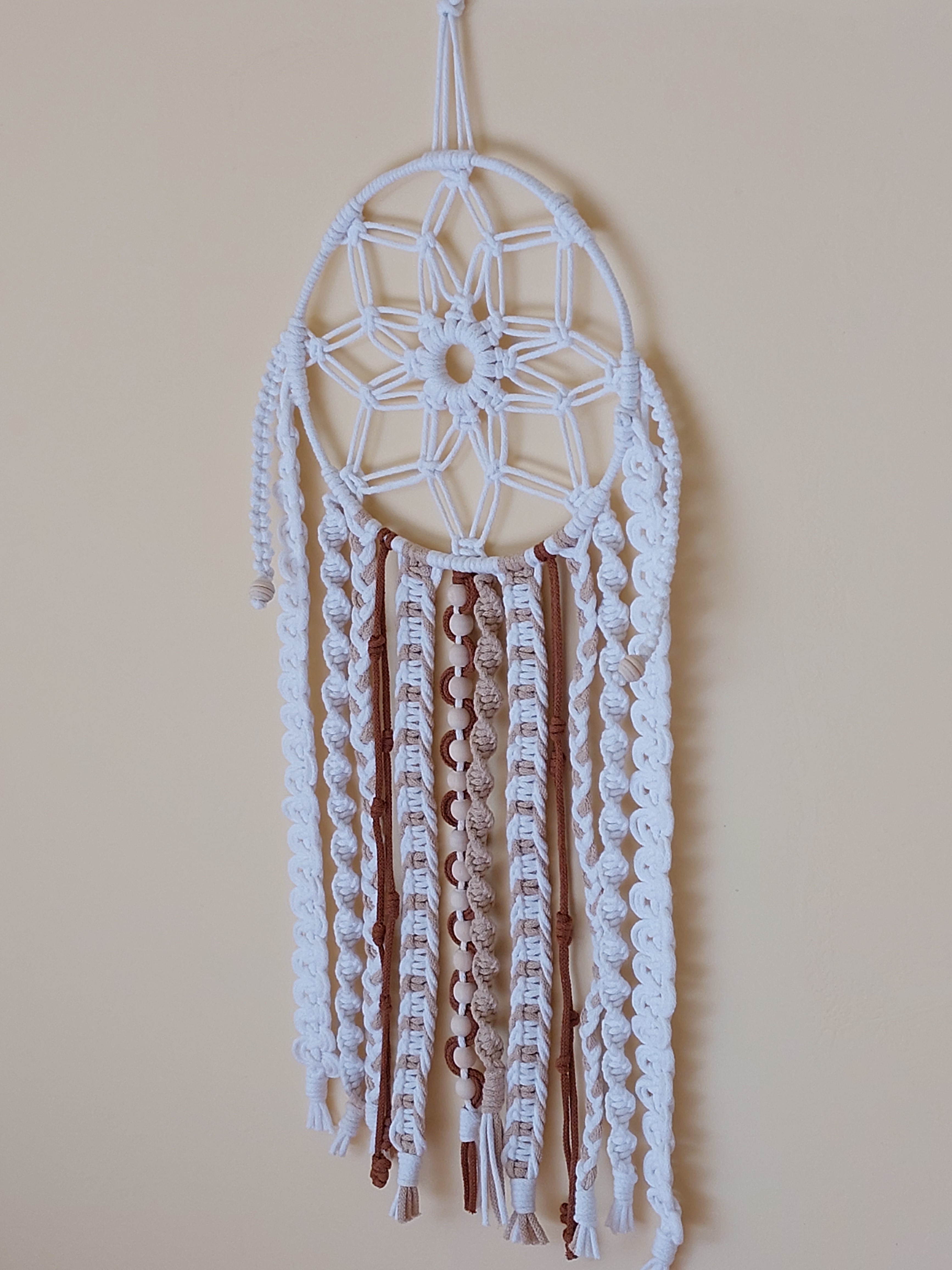 Učiňte svůj domov jedinečným s květem macrame. Rozměr celkový cca 25x45cm.