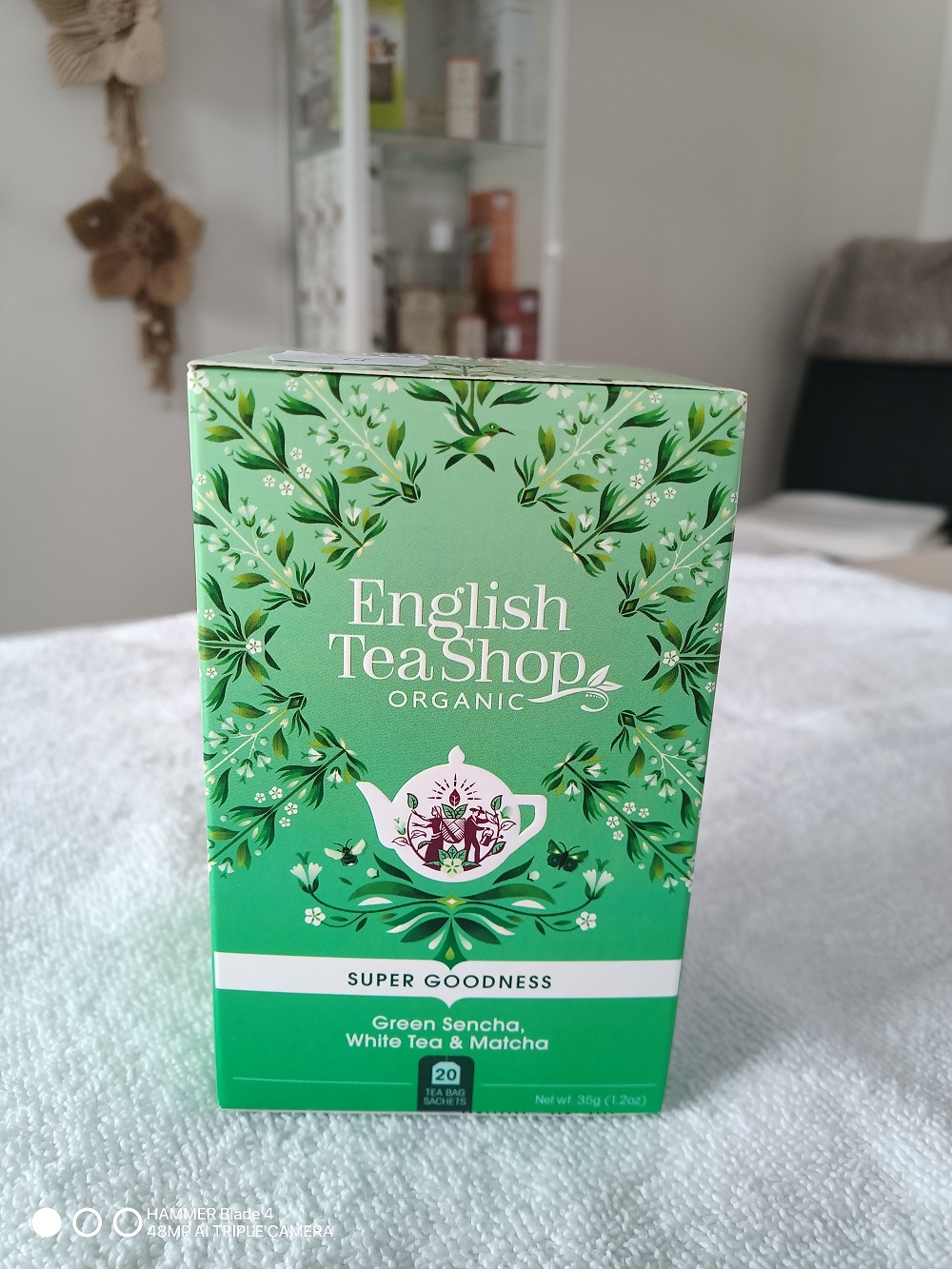 složení: organický čaj sencha 61%, organický bílý čaj 30%, organický prášek matcha 9%